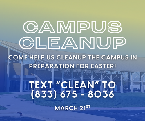 together as a church family and prepare for Easter! Please text "CLEAN" to (833) 675-8036, and we’ll tell you what to bring and next steps.