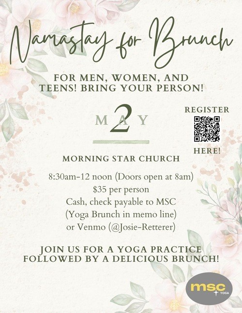 Start your morning with intention, connection, and community. Join us for a refreshing yoga practice followed by a relaxed and delicious brunch at Morning Star Church.